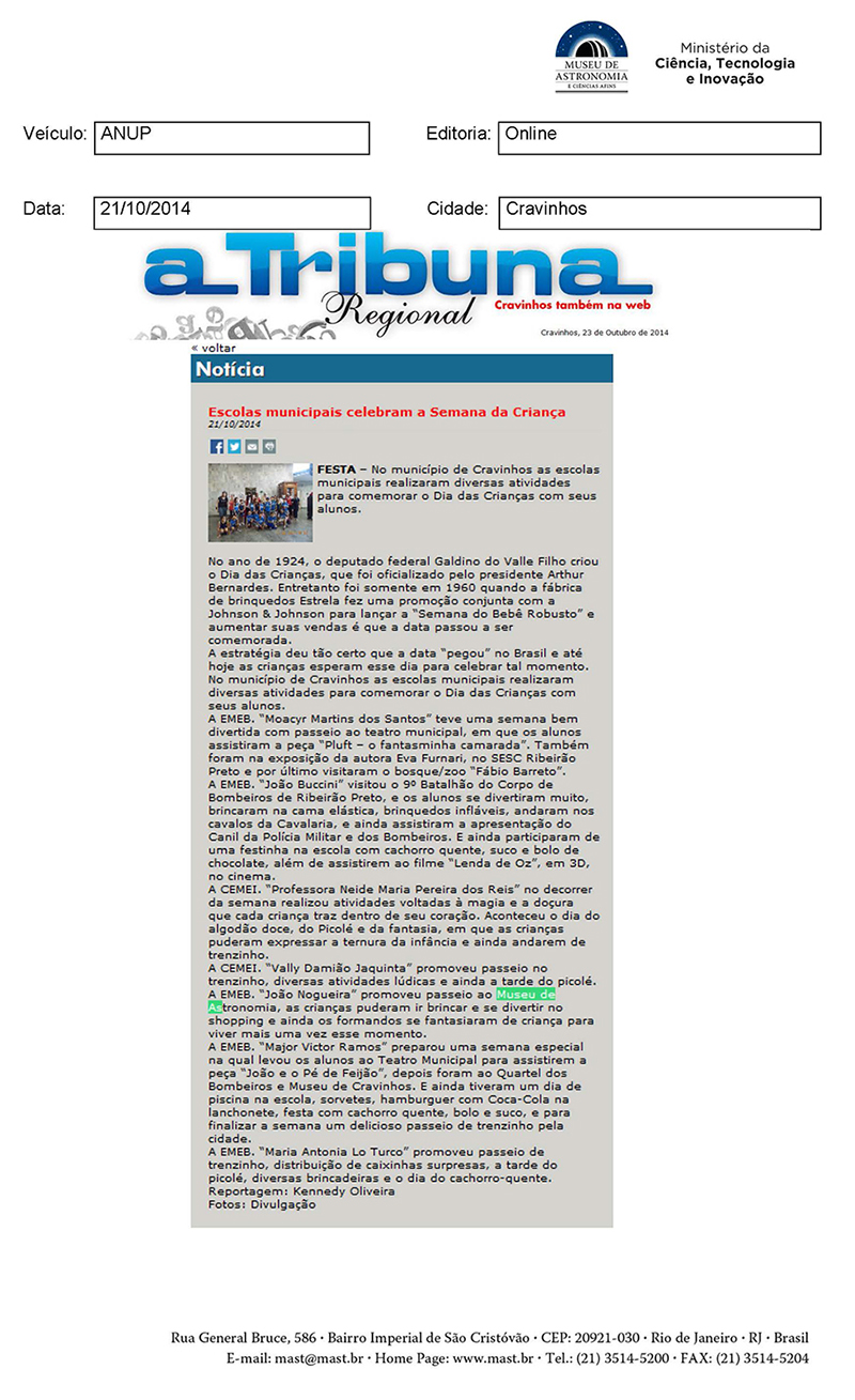 A Tribuna | Escolas municipais celebram a Semana da Criança