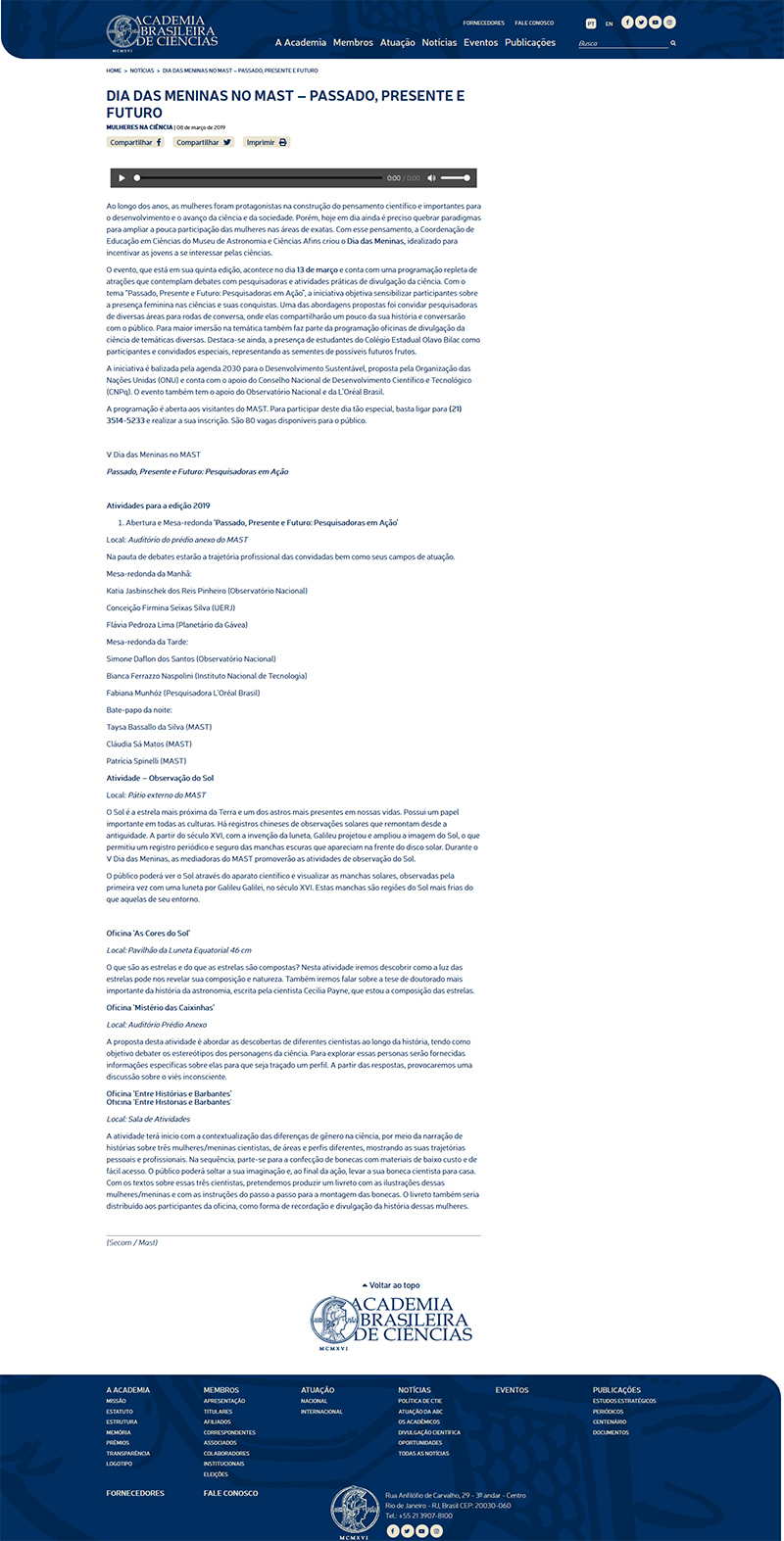 ABC - Academia Brasileira de Ciências | Dia das Meninas no MAST