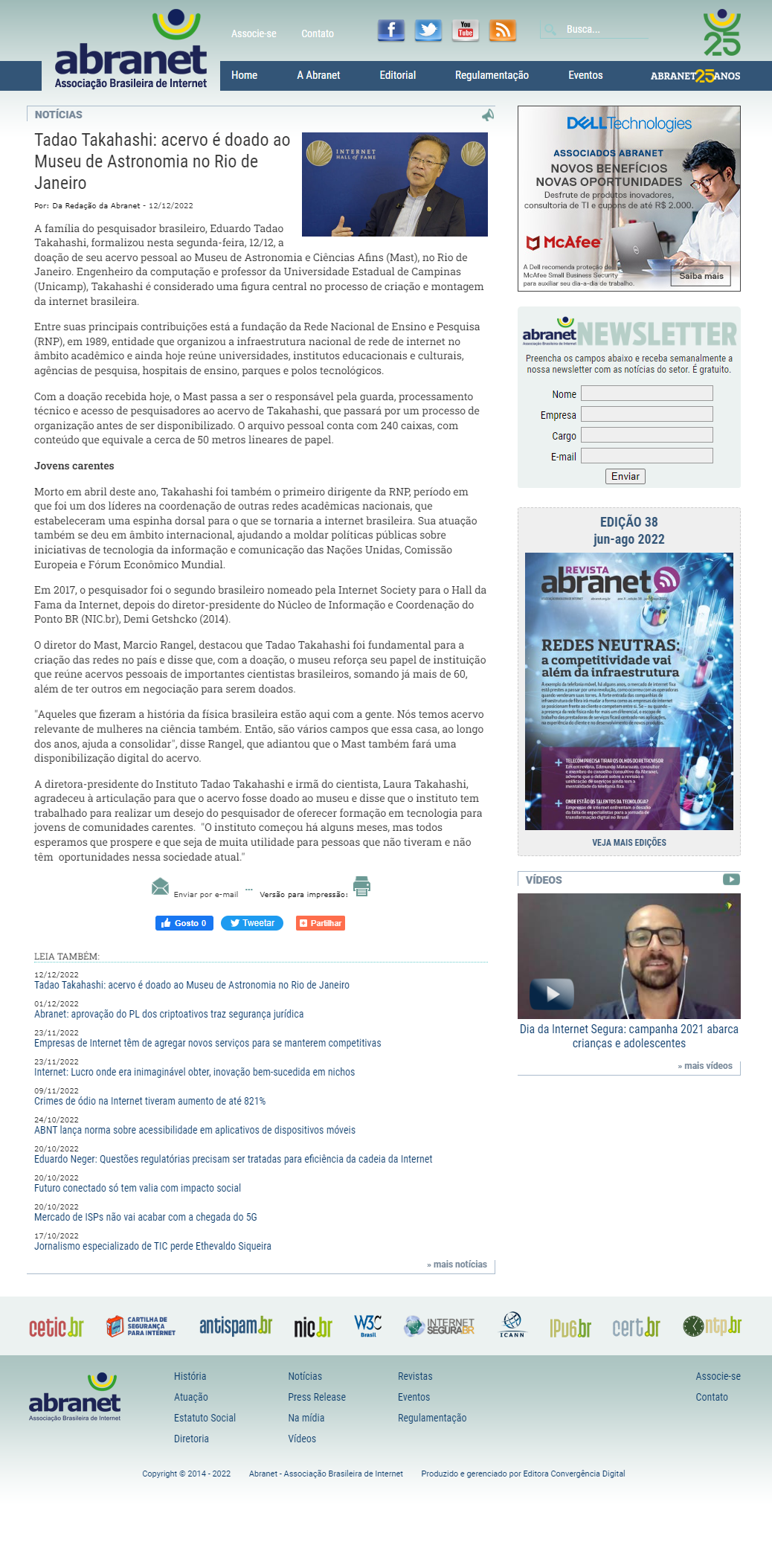 Abranet - Tadao Takahashi: acervo é doado ao Museu de Astronomia no Rio de Janeiro