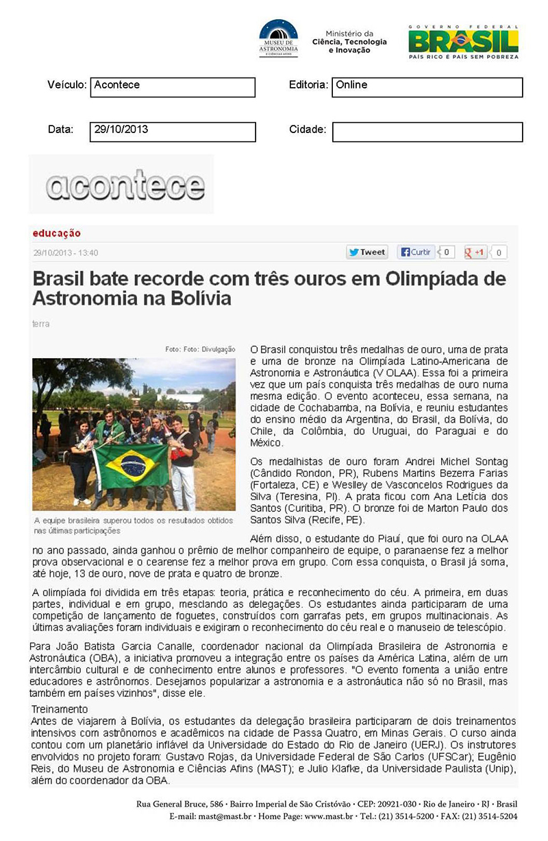 Acontece | Brasil bate recorde com três ouros em olimpíada de Astronomia na Bolívia