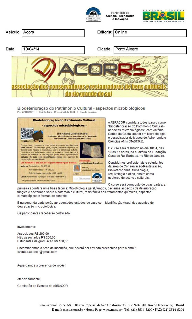 AcorsRS | Biodeterioração do Patrimônio Cultural - aspectos microbiológicos