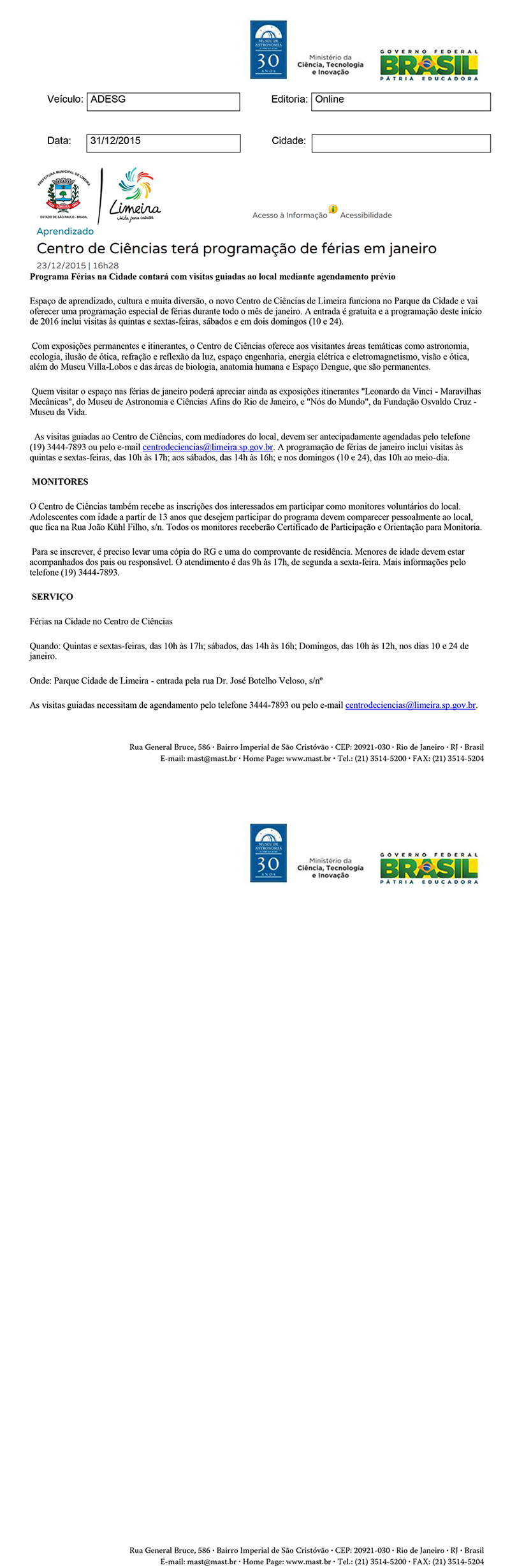ADESG | Centro de Ciências terá programação de férias em janeiro
