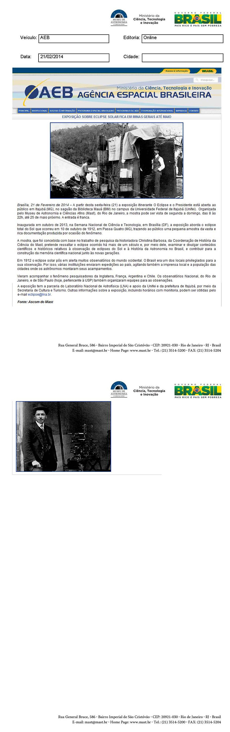 AEB | Exposição sobre eclipse solar fica em Minas Gerais até maio