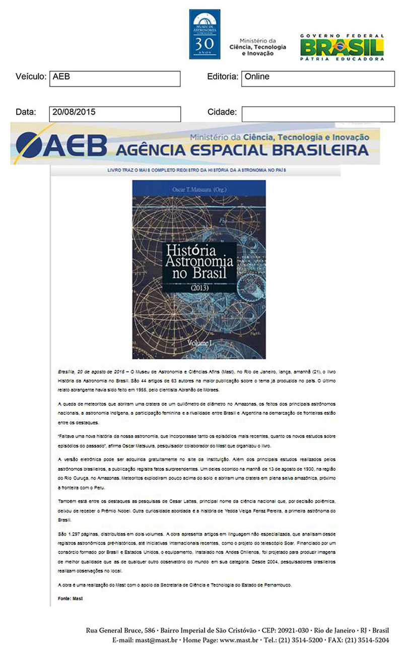 AEB | Livro traz o mais completo registro da História da Astronomia no País
