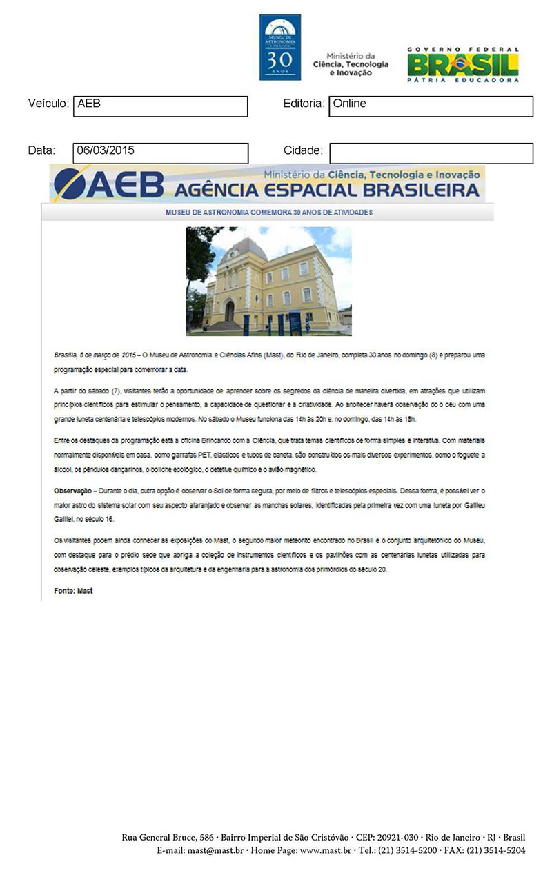 AEB | Museu de Astronomia comemora 30 anos de atividades