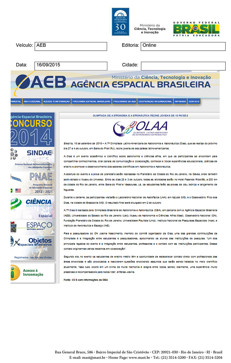 AEB | Olimpíada de Astronomia e Astronáutica reúne jovens de 10 países