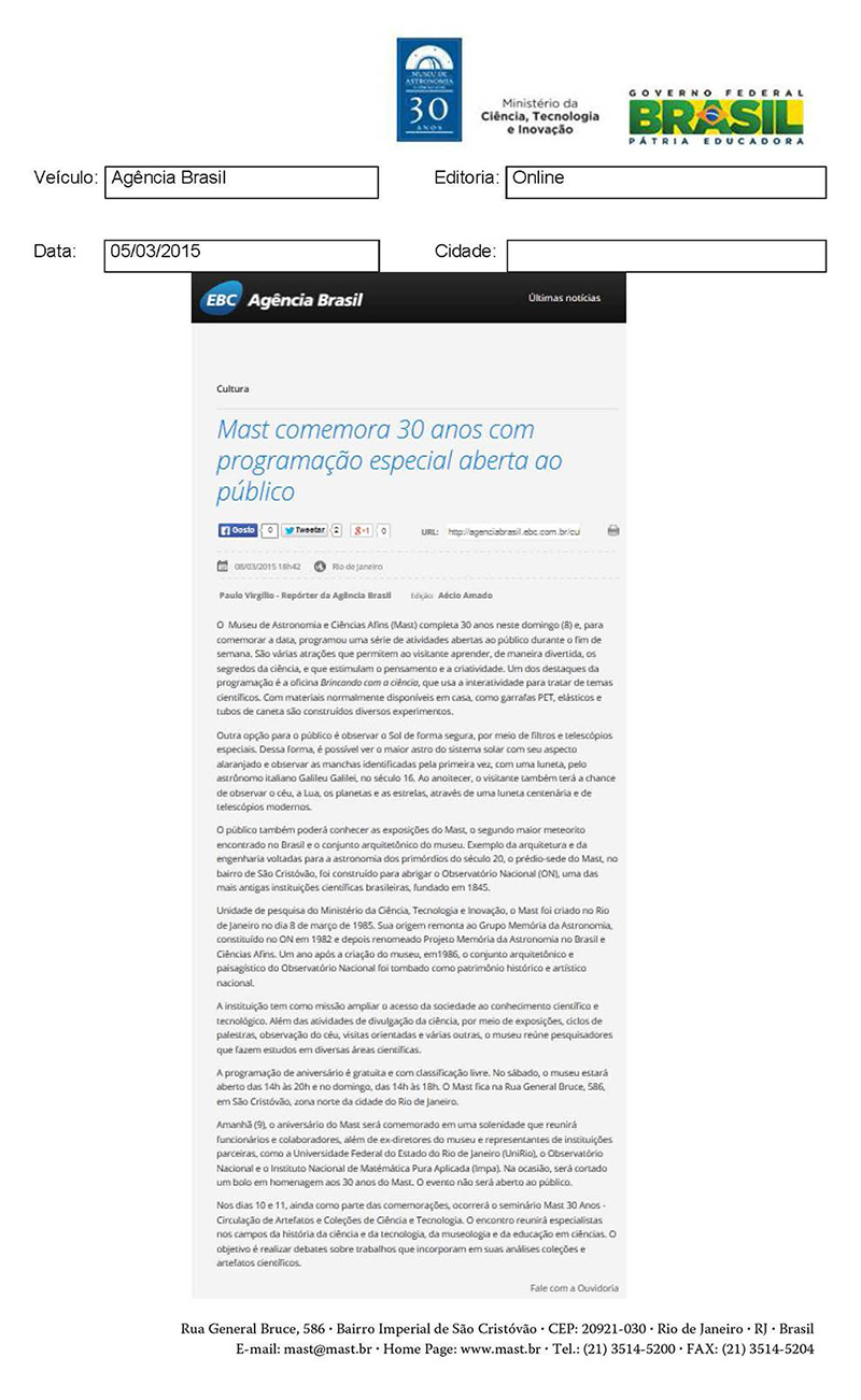 Agência Brasil - EBC | Museu de Astronomia comemora 30 anos com programação especial
