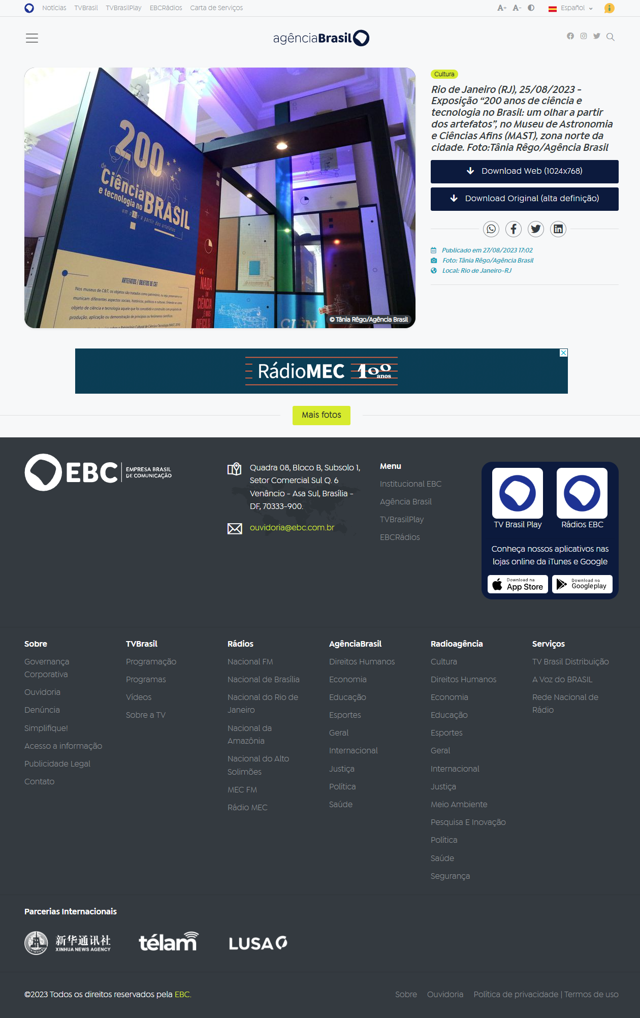 Agência Brasil - Exposição no MAST “200 anos de ciência e tecnologia no Brasil: um olhar a partir dos artefatos"