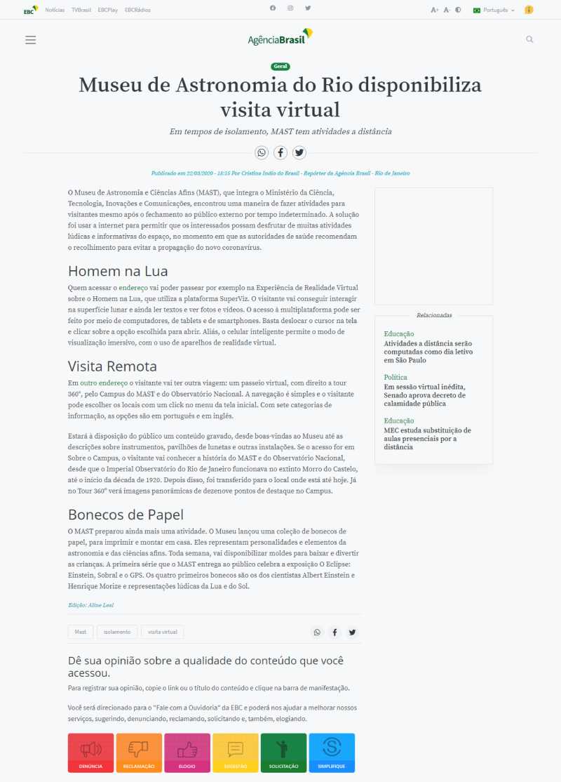 Agência Brasil | Museu de Astronomia do Rio disponibiliza visita virtual
