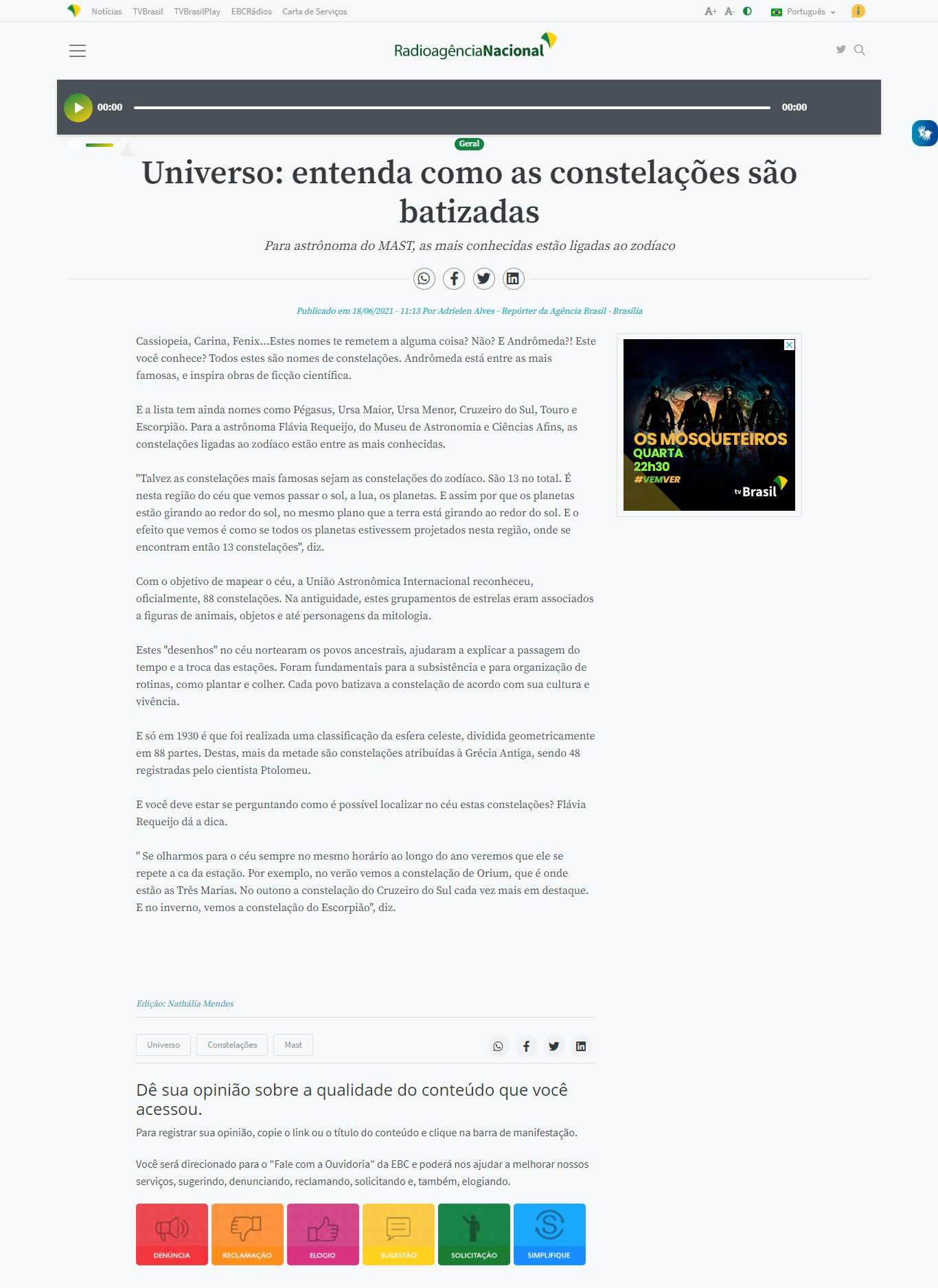 Agência Brasil / Podcast 'Universo' - Astrônoma do MAST Flávia Requeijo é a entrevistada na reportagem 'Entenda como as constelações são batizadas'