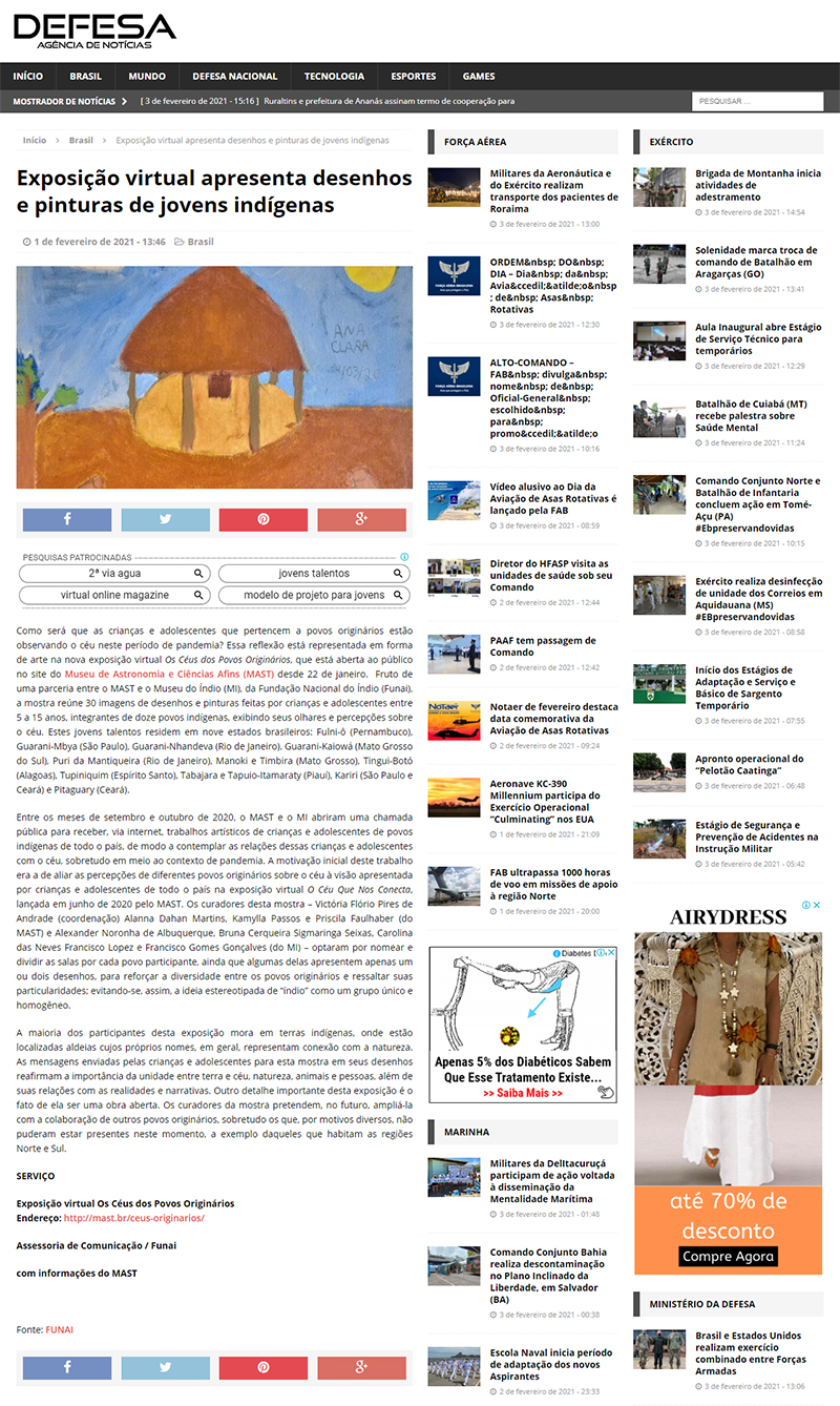 Agência de Notícias Defesa | MAST e Museu do Índio lançam mostra virtual 'Os Céus dos Povos Originários'
