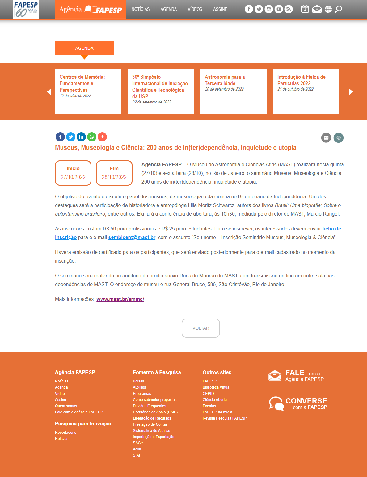 Agência FAPESP - Museus, Museologia e Ciência: 200 anos de in(ter)dependência, inquietude e utopia