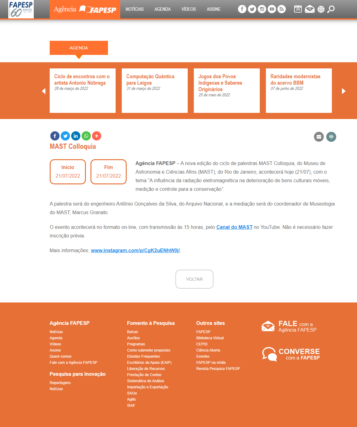 Agência FAPESP - Próxima edição do 'MAST Colloquia' vai abordar a influência da luz na deterioração de bens culturais