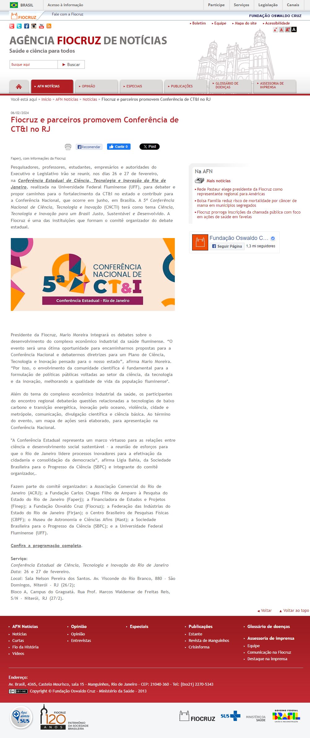 Agência Fiocruz de Notícias - Fiocruz e parceiros promovem Conferência de CT&I no RJ
