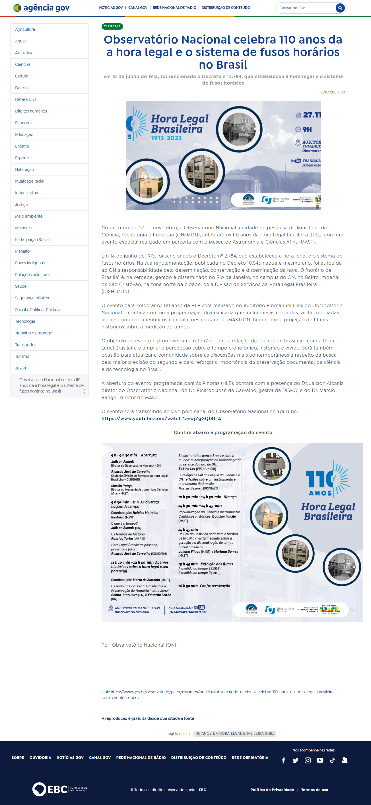 Agência GOV - Observatório Nacional celebra 110 anos da a hora legal e o sistema de fusos horários no Brasil