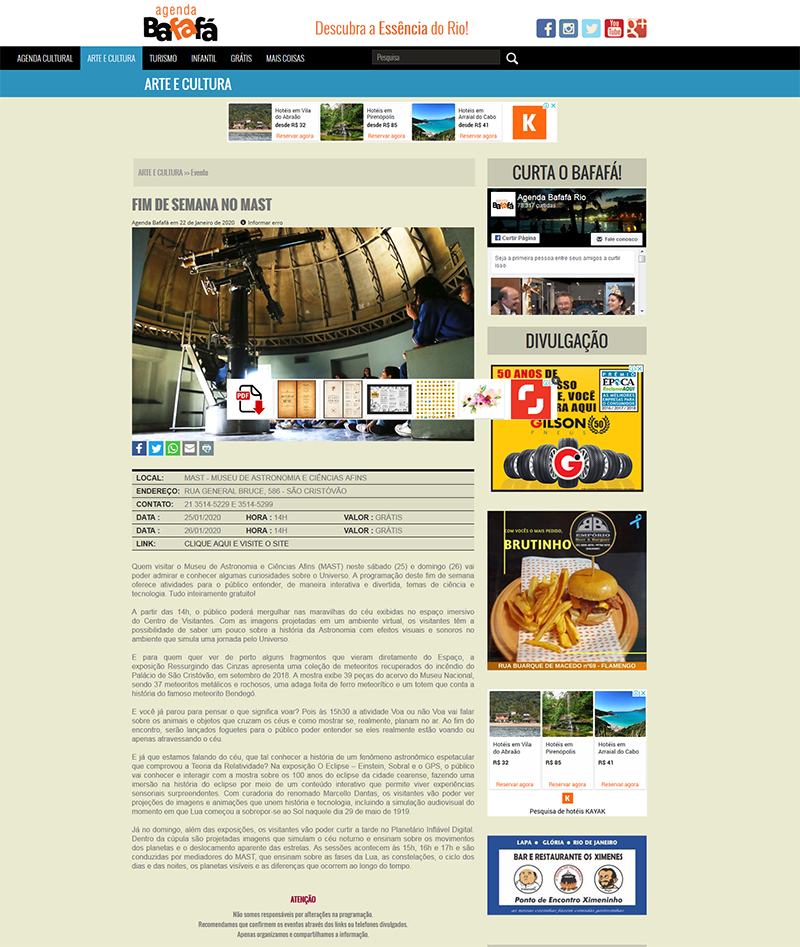 Agenda Bafafá | Fim de Semana de curiosidades e conhecimento no MAST