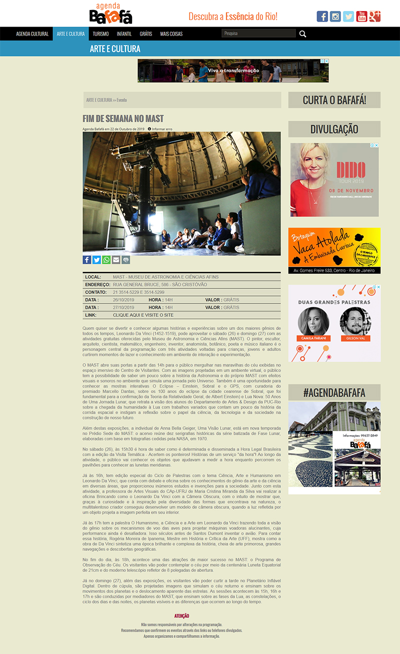 Agenda Bafafá | Fim de Semana Genial no MAST