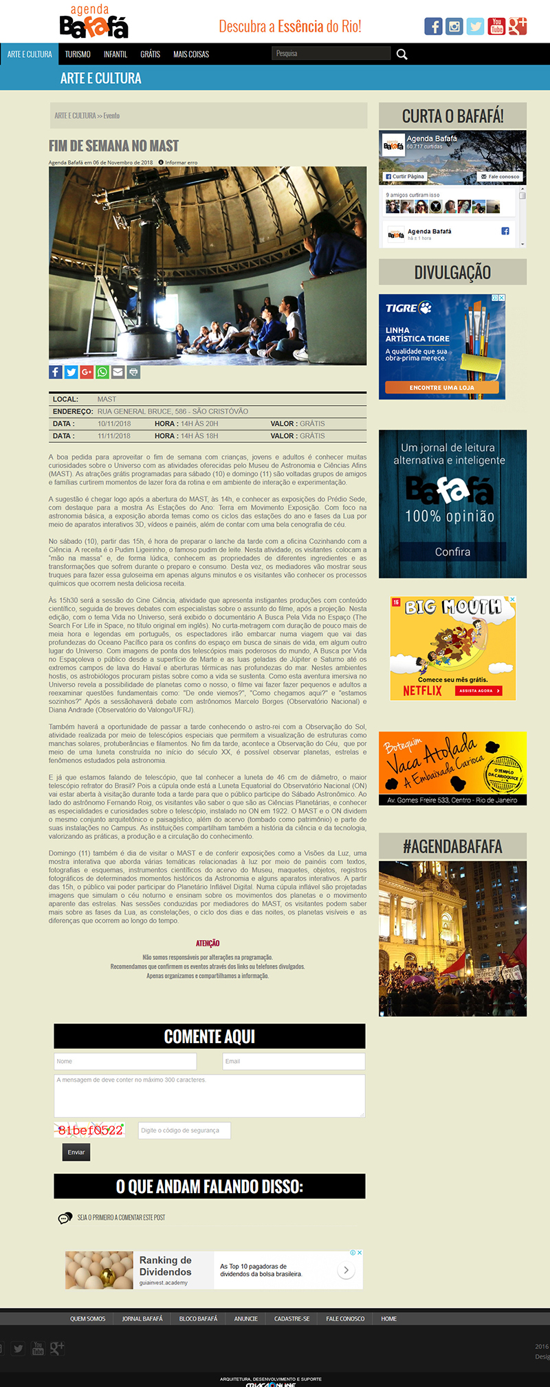 Agenda Bafafá | Fim de Semana no MAST