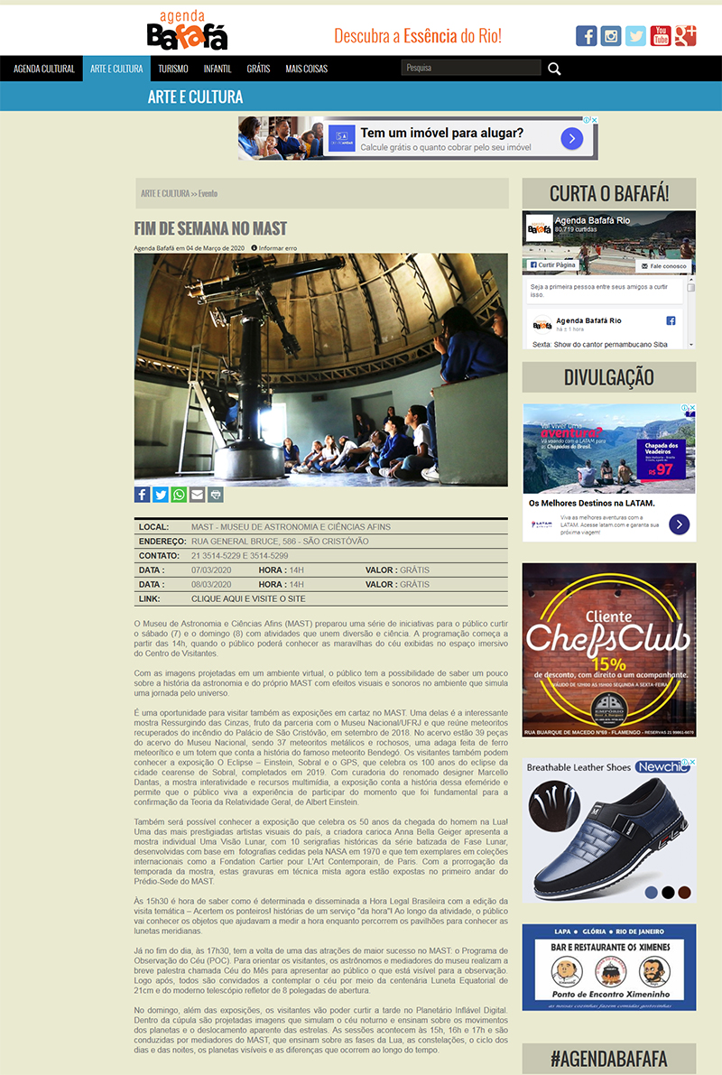 Agenda Bafafá | Fim de Semana voltado para o espaço e tempo