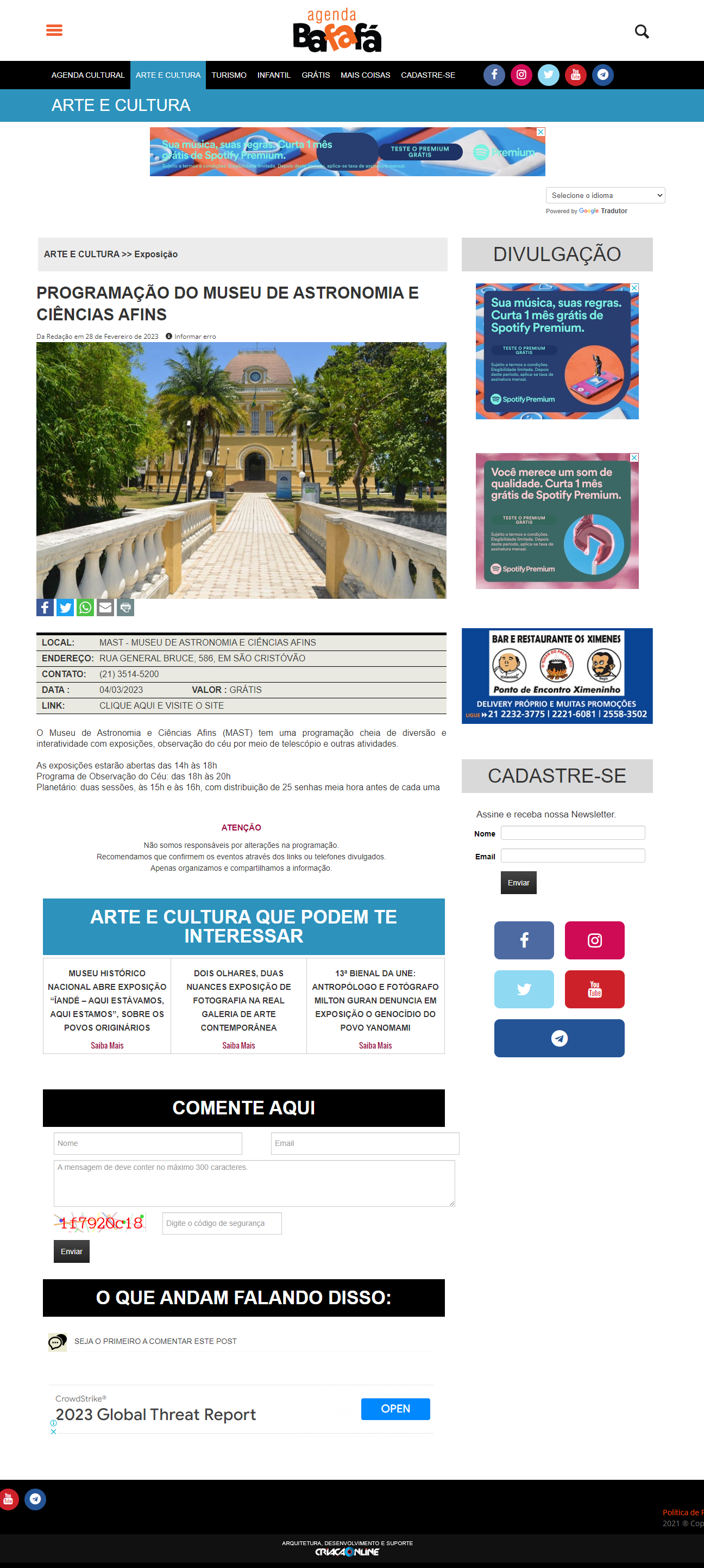 Agenda Bafafá - Programação do Museu de Astronomia e Ciências Afins