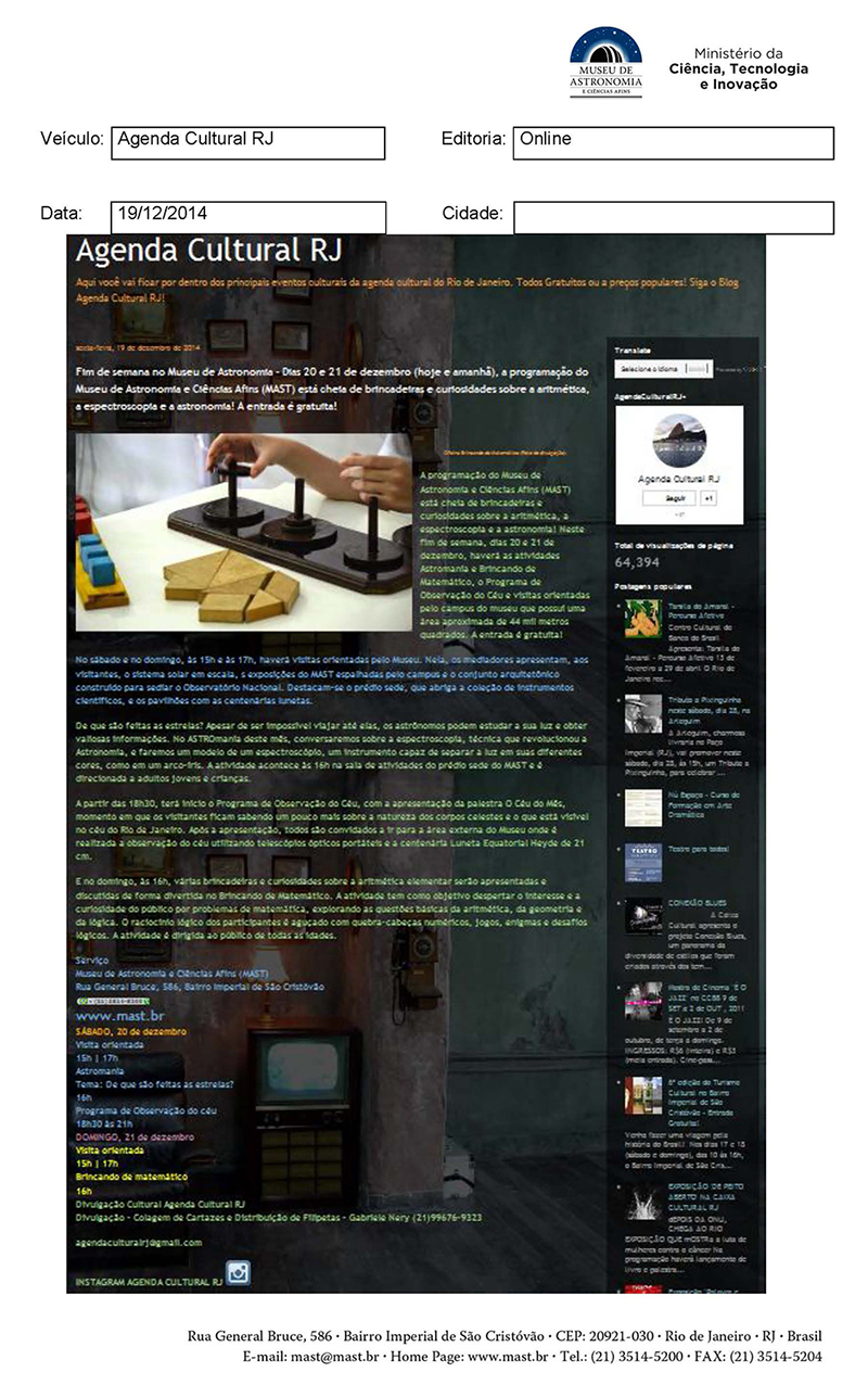Agenda Cultural RJ | Fim de Semana no Museu de Astronomia