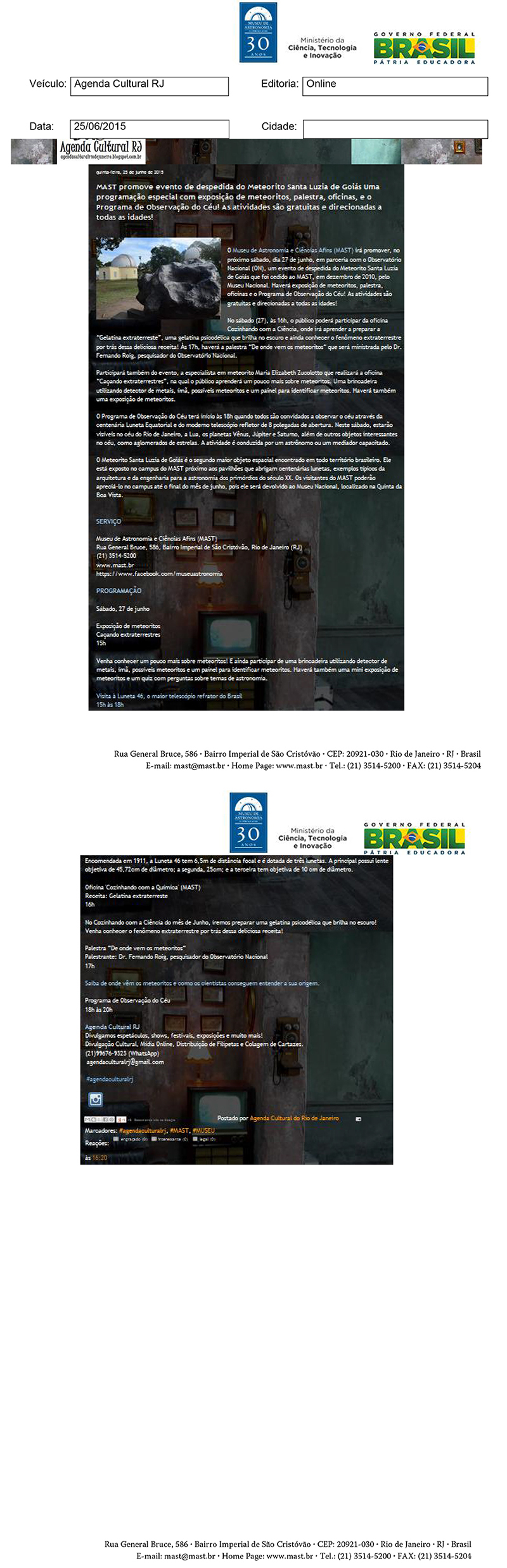 Agenda Cultural RJ | MAST promove evento de despedida do Meteorito Santa Luzia de Goiás uma programação especial
