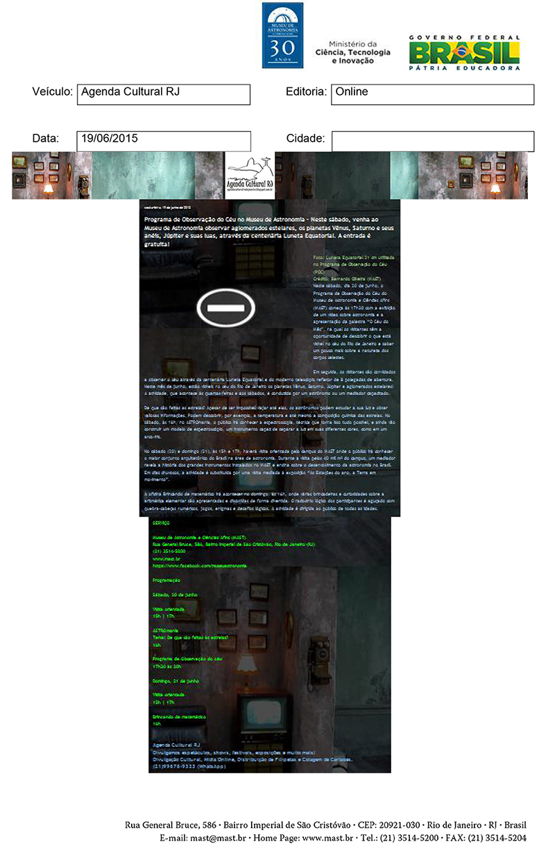 Agenda Cultural RJ | Programa de Observação do Céu no Museu de Astronomia