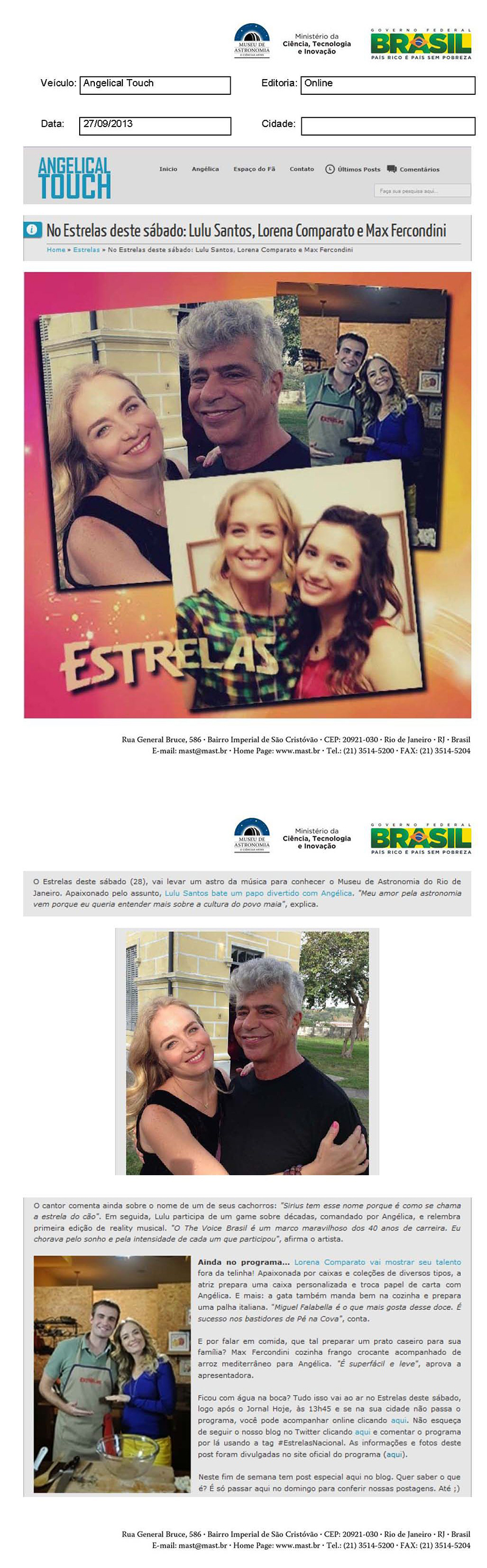 Algelical Touch | No Estrelas deste sábado: Lulu Santos, Lorena Camparato e Max Fercondini
