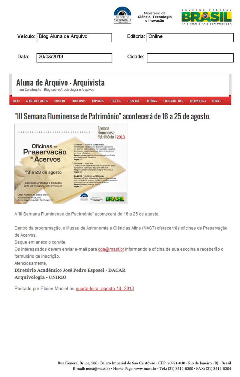 Aluna de Arquivo | "III Semana Fluminense do Patrimônio" acontecerá de 16 a 25 de agosto