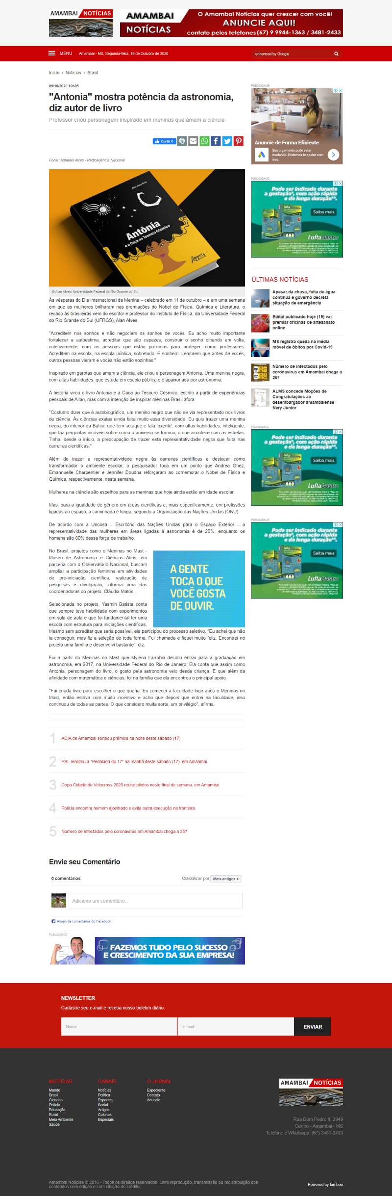 Amambai Notícias on-line (Amambai - MS) | MAST na reportagem "Antonia" mostra potência da astronomia, diz autor de livro