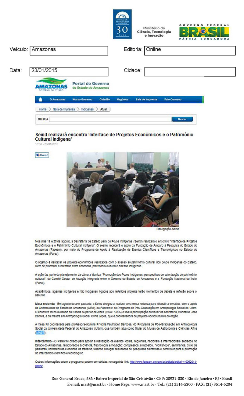 Amazonas | Seind realizará encontro 'Interface de Projetos Econômicos e o Patrimônio Cultural Indígena'