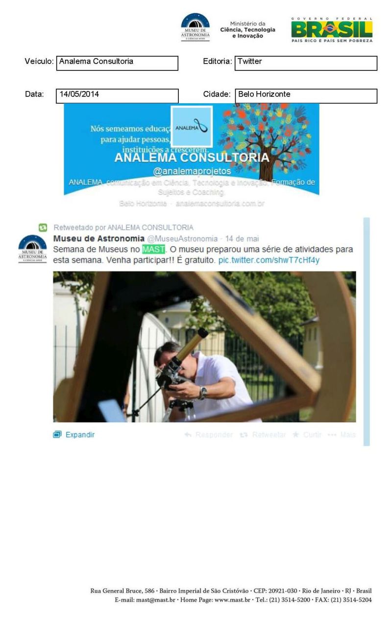 Analema Consultoria | Semana de Museus no MAST