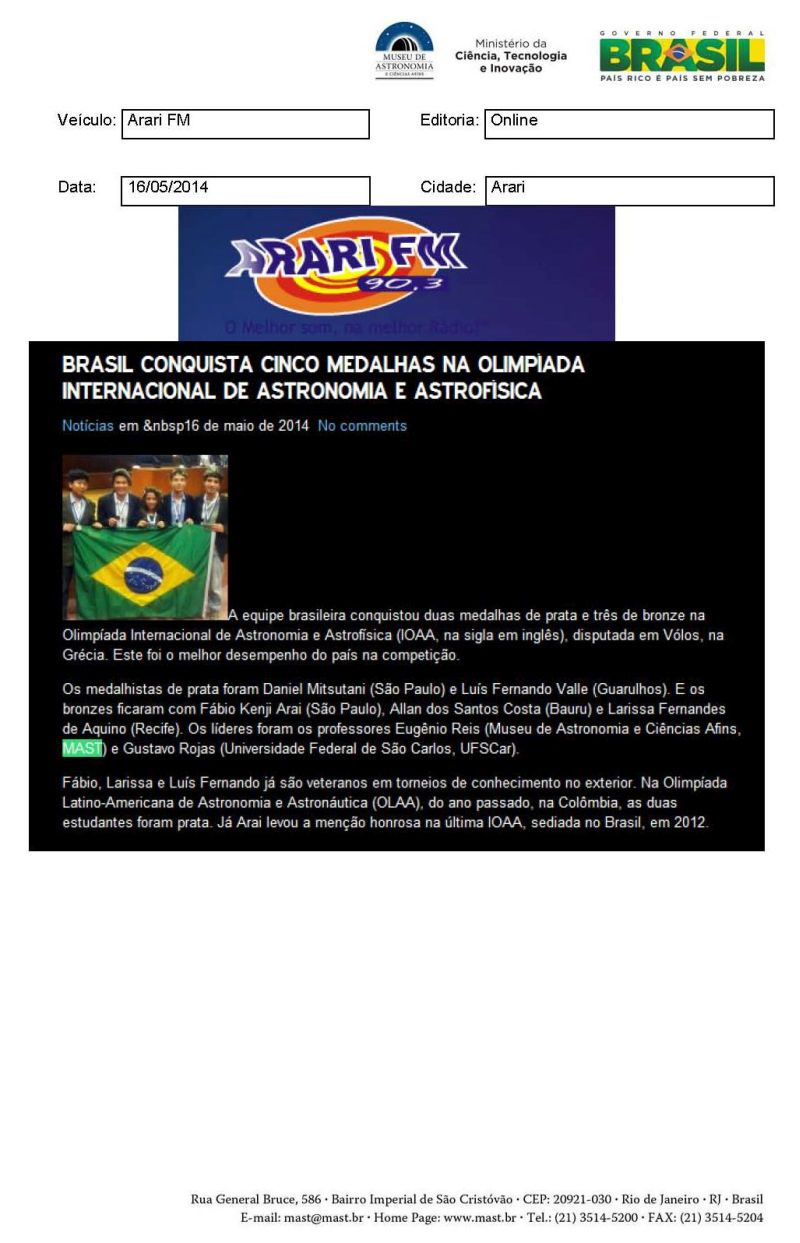 Arari FM | Brasil conquista cinco medalhas na Olimpíada Internacional de Astronomia e Astrofísica