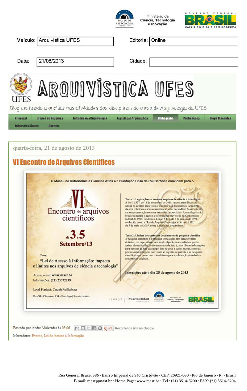Arquivística UFES | VI Encontro de Acervos Científicos