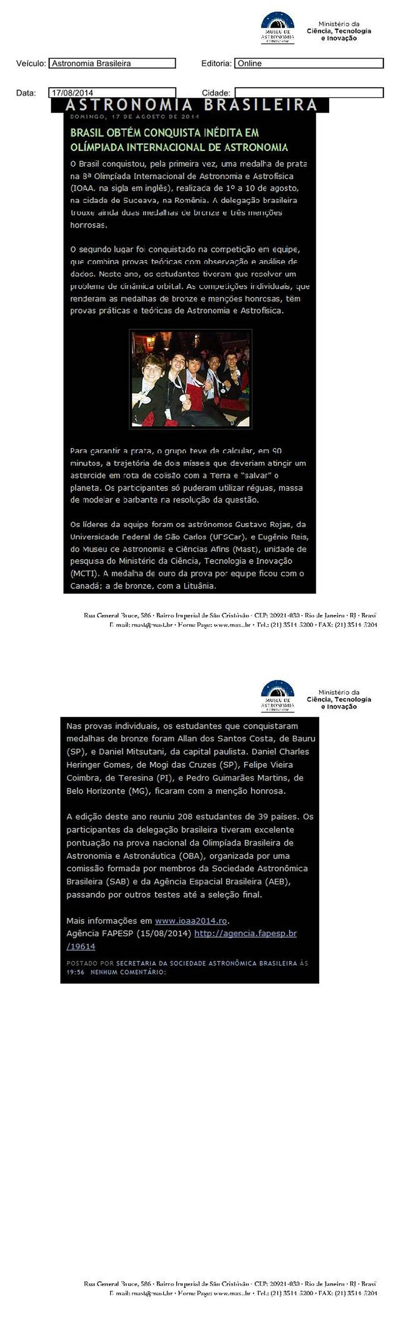 Astronomia Brasileira | Brasil obtém conquista inédita em olimpíada internacional de astronomia
