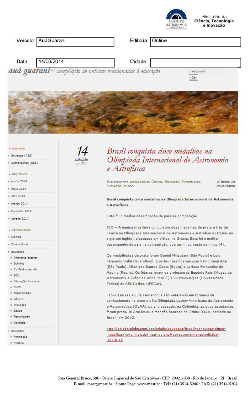Auá Guarani | Brasil conquista cinco medalhas na Olimpíada Internacional de Astronomia e Astrofísica