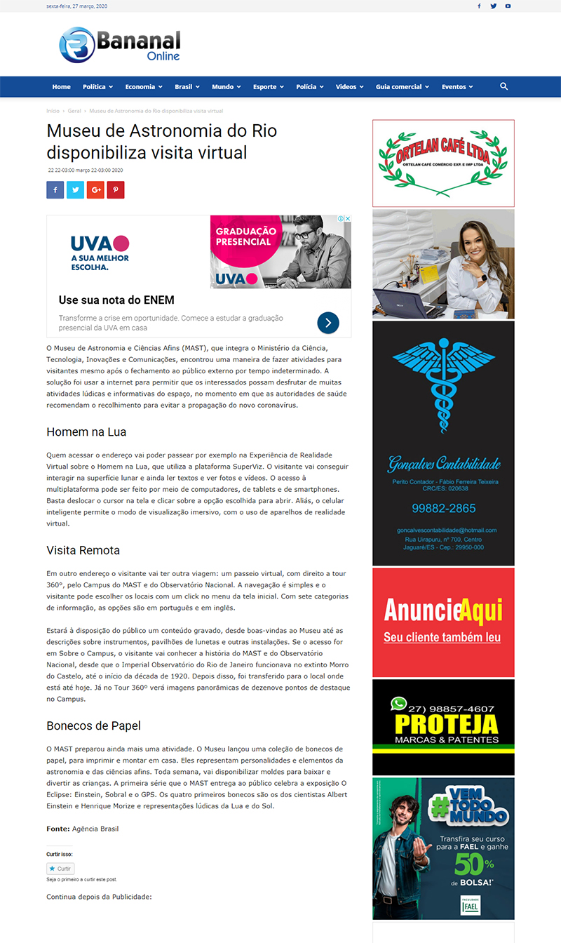 Bananal Online (Rio Bananal - ES) | MAST disponibiliza visita virtual