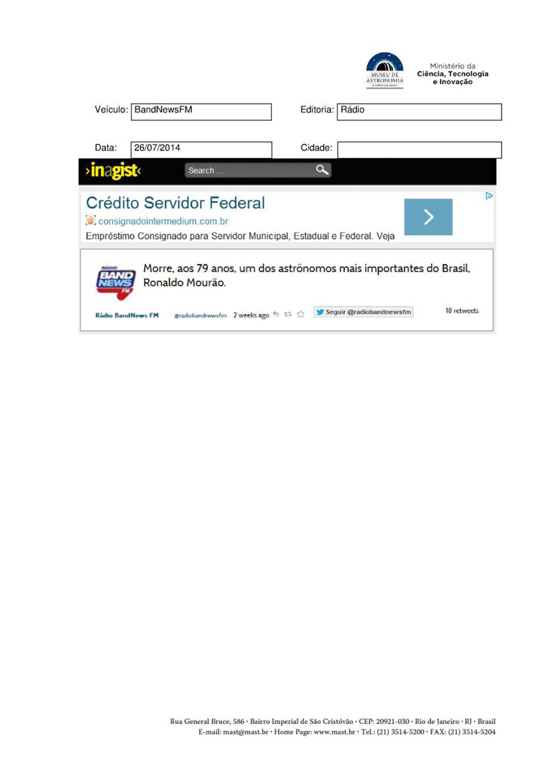 Band News FM | Morre, aos 79 anos, um dos astrônomos mais importantes do Brasil, Ronaldo Mourão