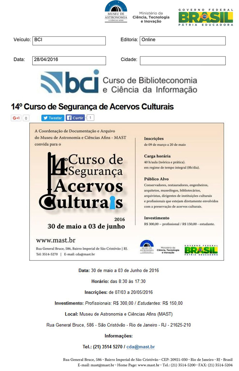 BCI | 14º Curso de Segurança de Acervos Culturais