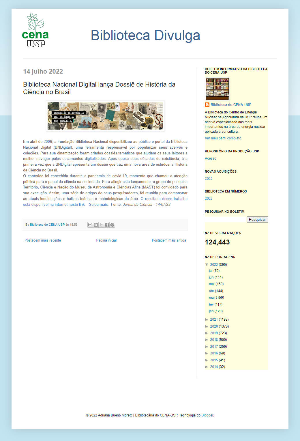 Bibliocena USP (blogue) - MAST participa da criação do dossiê de História da Ciência para a Biblioteca Nacional