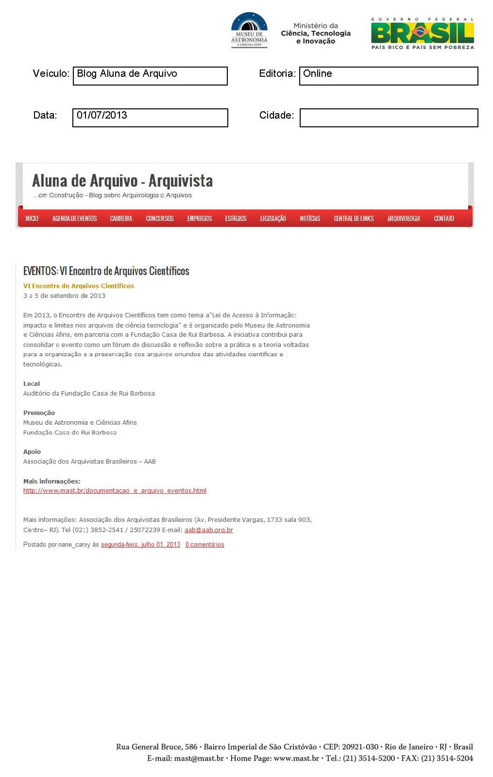 Blog Aluna de Arquivo | VI Encontro de Arquivos Científicos