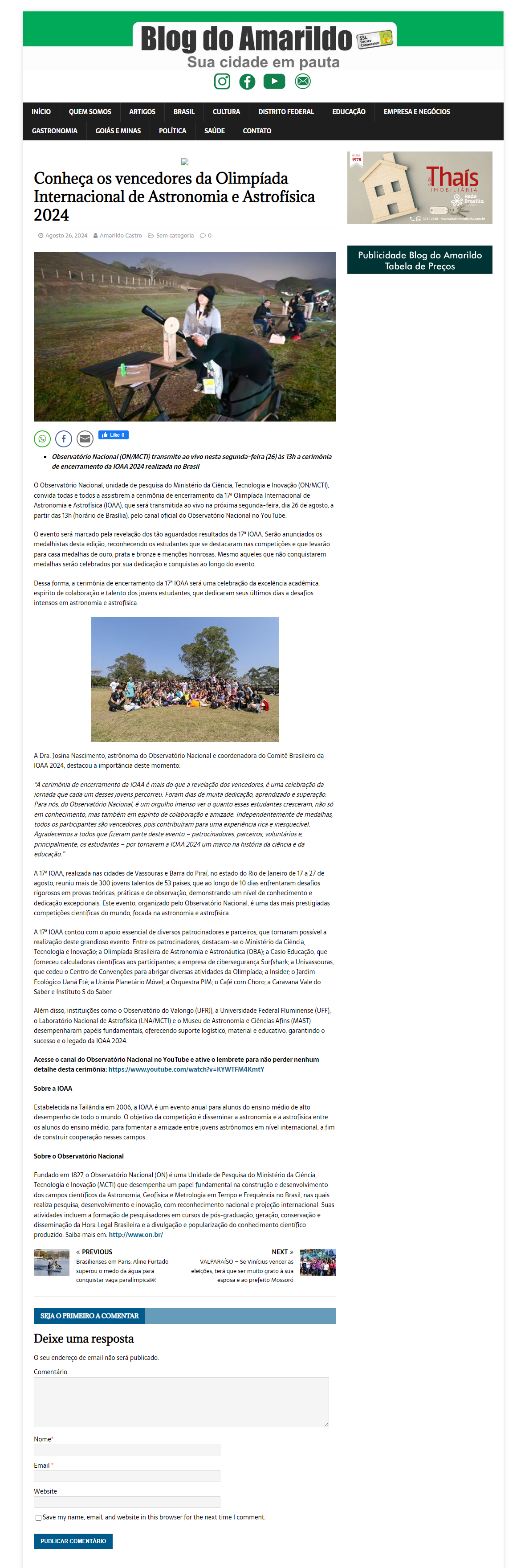 Blog do Amarildo - Conheça os vencedores da Olimpíada Internacional de Astronomia e Astrofísica 2024