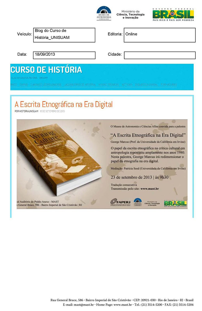 Blog do Curso de História | A Escrita Etnográfica na Era Digital"