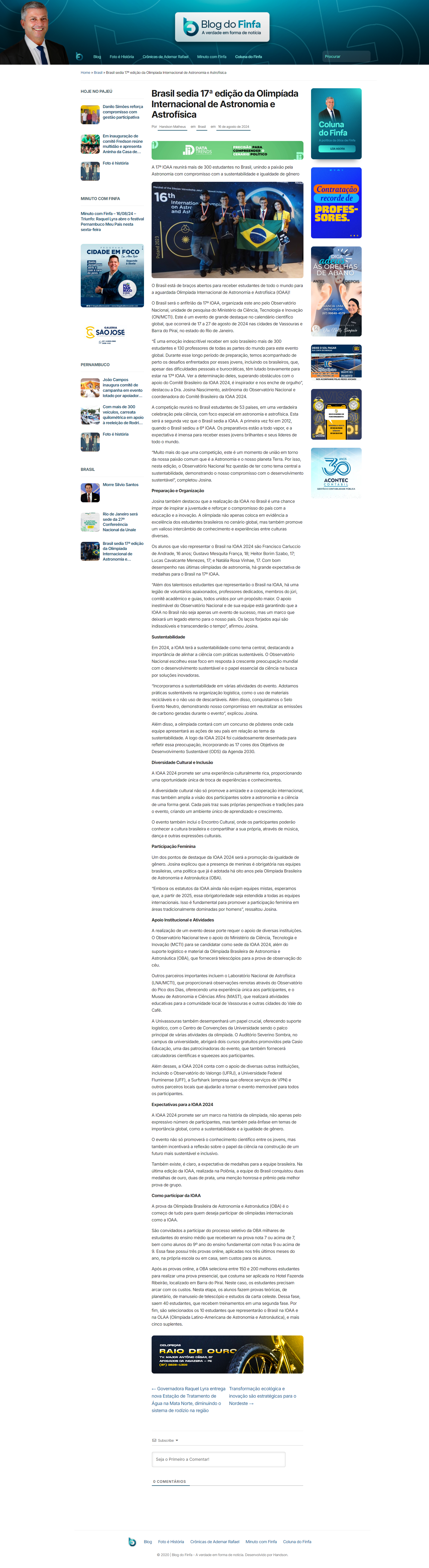 Blog do Finfa - Brasil sedia 17ª edição da Olimpíada Internacional de Astronomia e Astrofísica