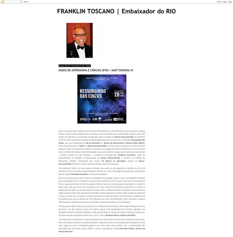 Blog Franklin Toscano | MAST abre mostra 'Ressurgindo das Cinzas' com meteoritos do Museu Nacional