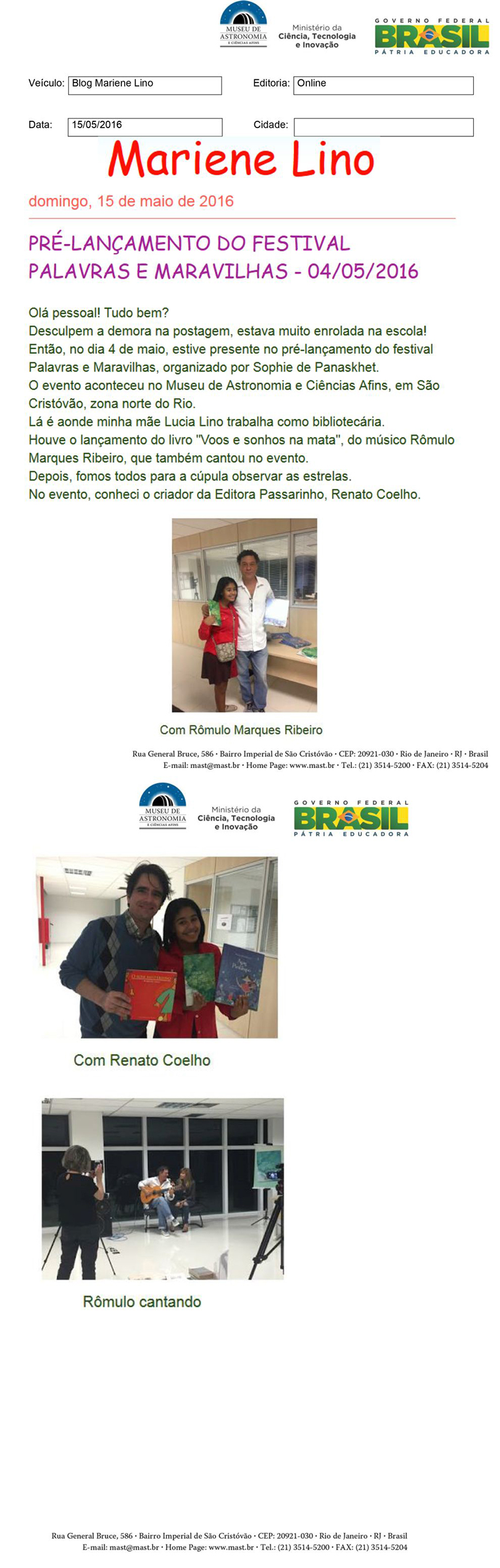 Blog Mariene Lino | Pré-lançamento do Festival Palavras e Maravilhas