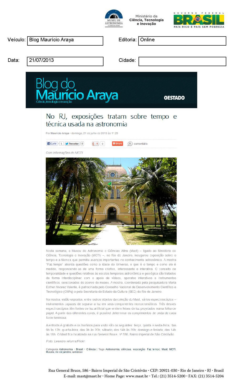Blog Mauricio Araya | No RJ, exposições tratam sobre tempo e técnica usada na astronomia