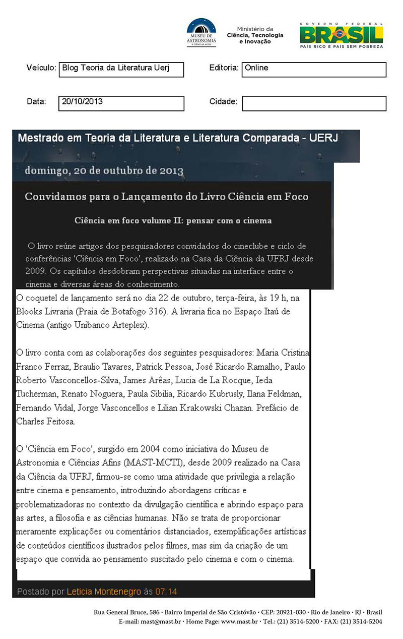 Blog Teoria da Literatura - UERJ | Ciência em Foco volume II: pensar com o cinema