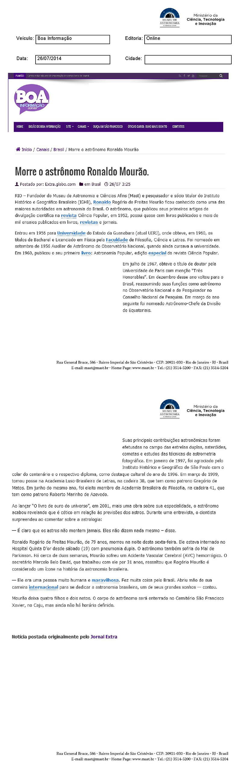 Boa Informação | Morre o astrônomo Ronaldo Mourão