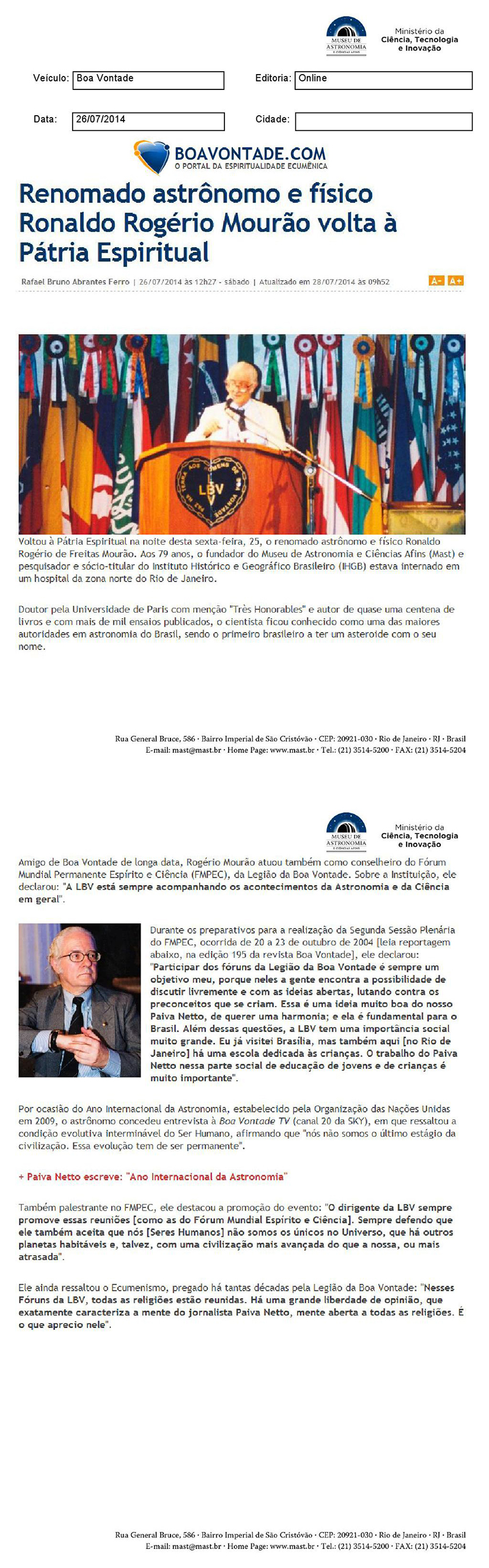 Boa Vontade | Renomado astrônomo e físico Ronaldo Rogério Mourão volta à Pátria Espiritual